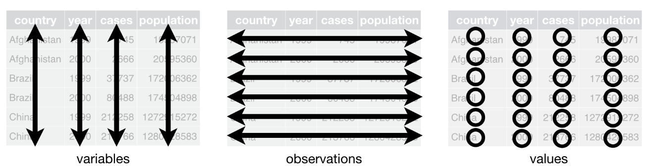 cols: Columns to reshape (the ones with repeated measurements)names_to: Name for the new column that will hold the old column namesvalues_to: Name for the new column that will hold the valuesThink of it as “unpacking”